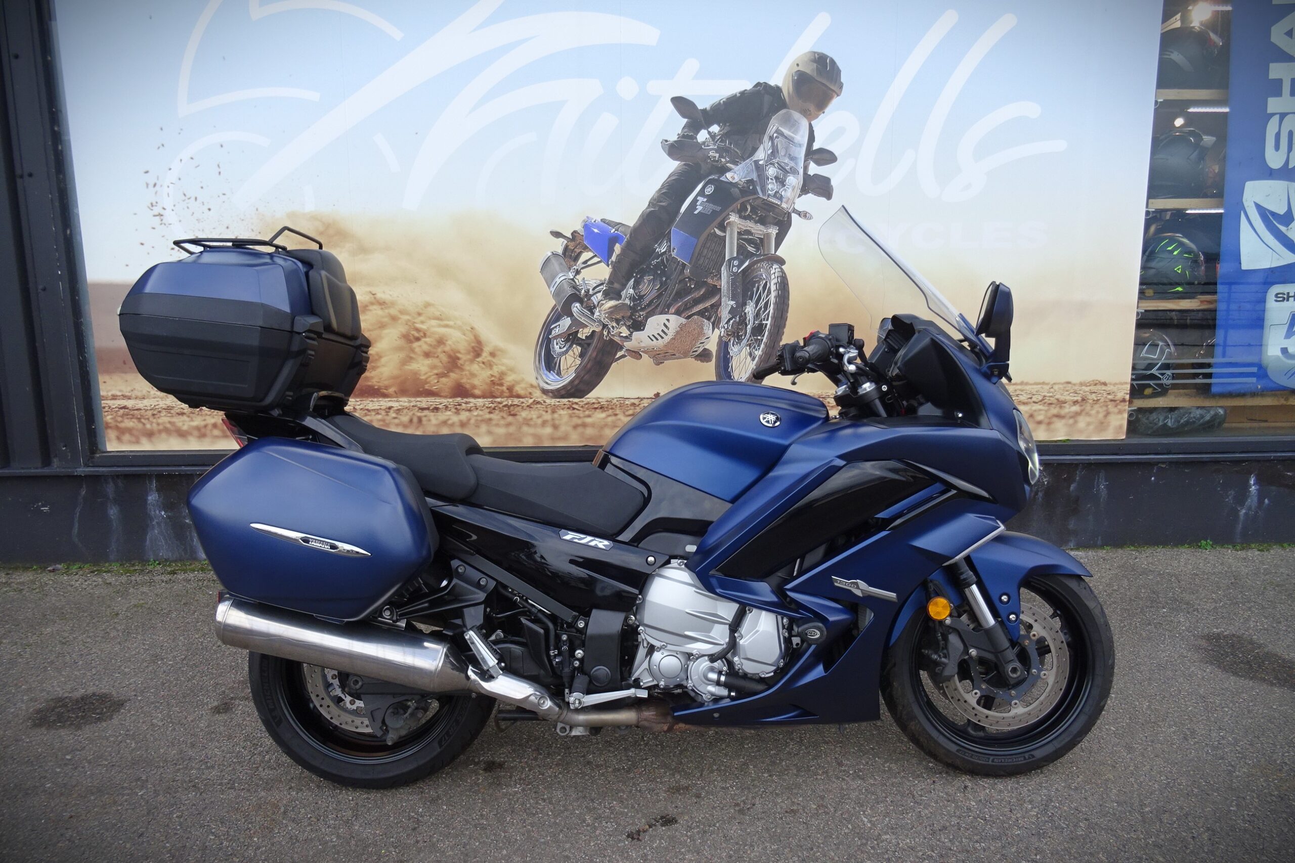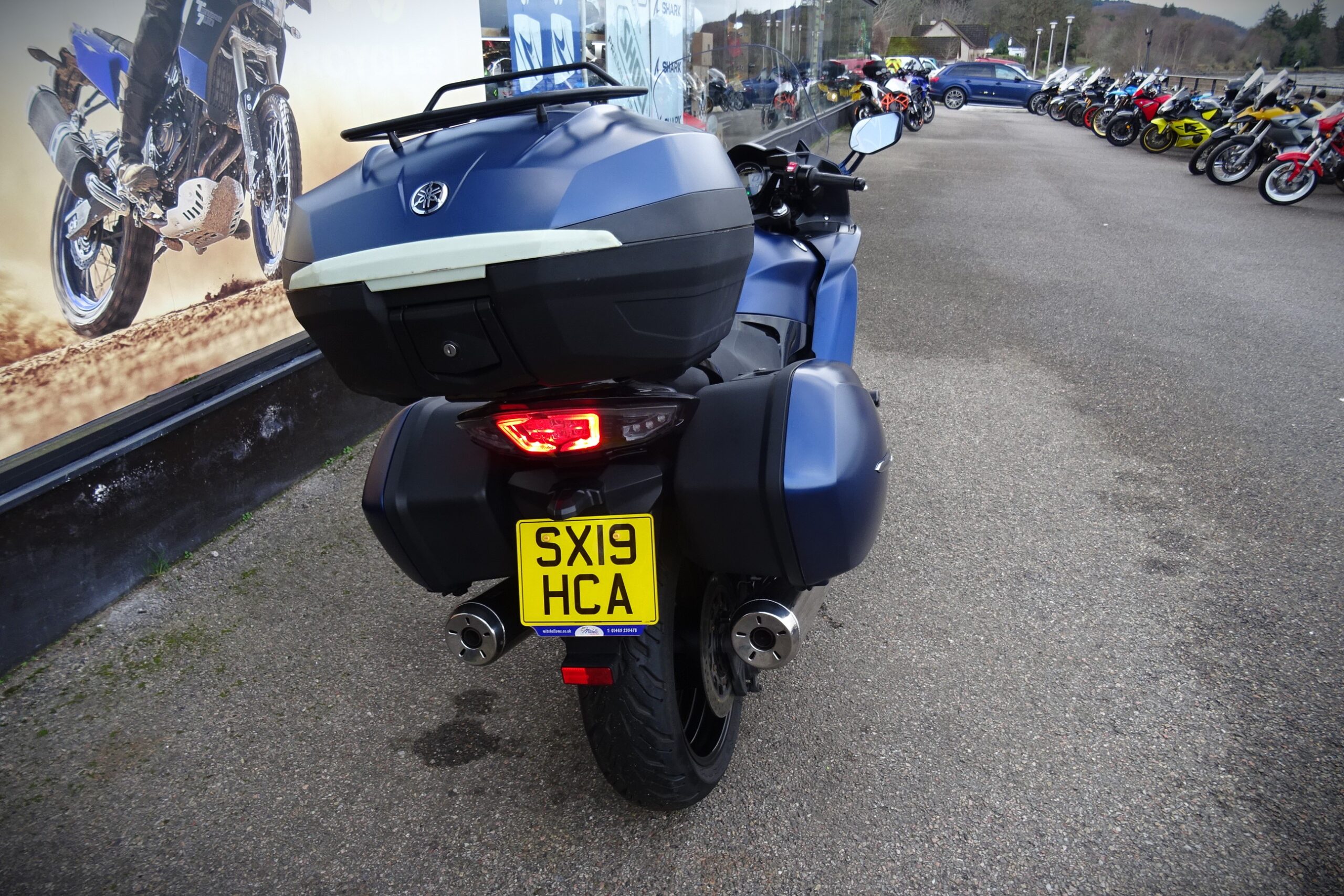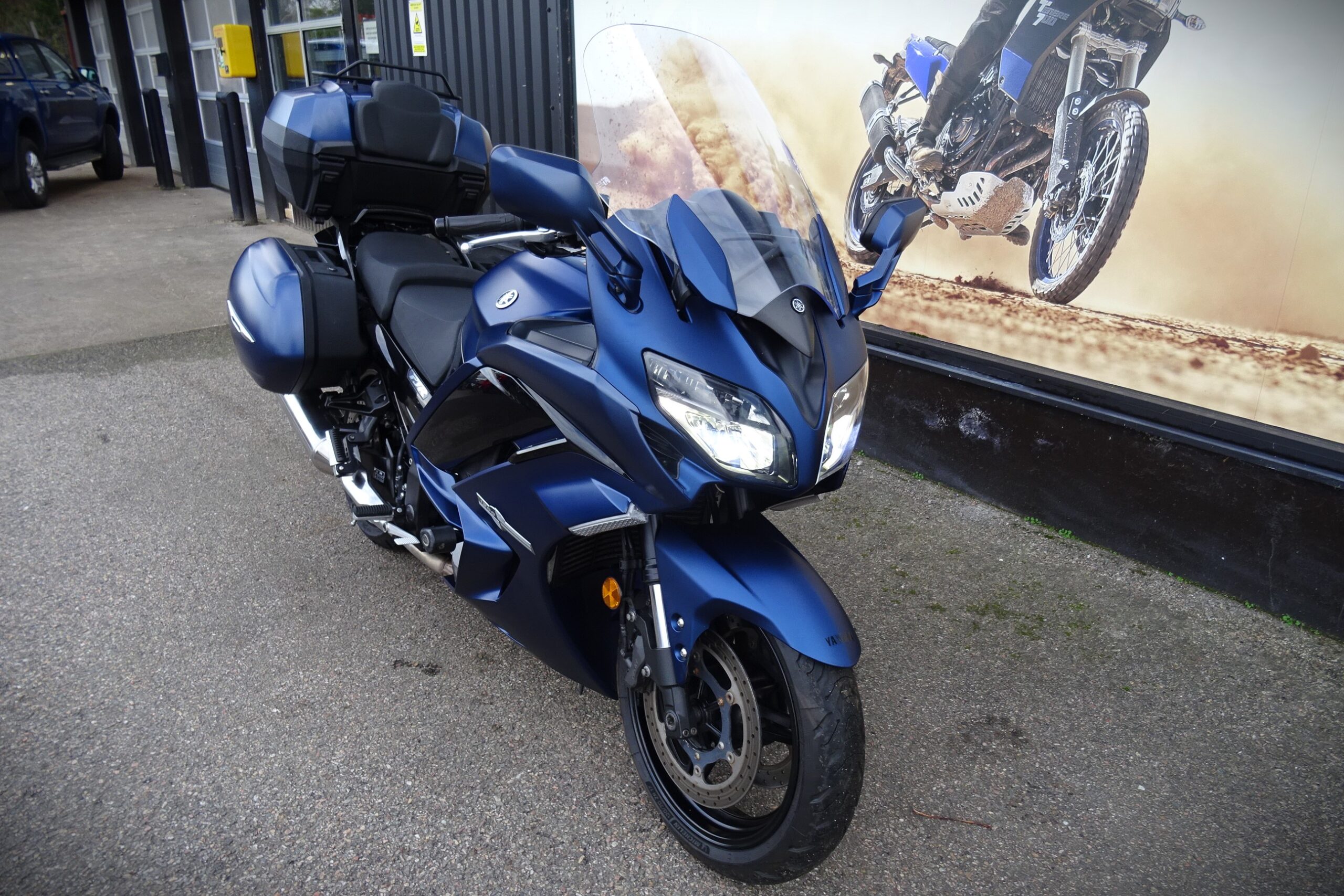 Topbox (36L) and panniers (35L) included, in a matching Matte Blue colour.